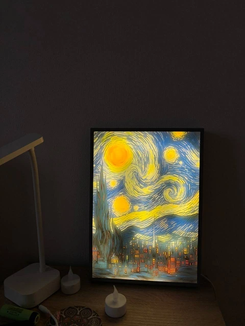 Transform your space into a masterpiece with the Van Gogh Starry Night Night Light. Inspired by the world-famous painting, this artistic LED lamp brings a warm, enchanting glow to any room. By day, it’s a beautiful monochrome wall art display; by night, it illuminates into vibrant, colorful brilliance that captures the magic of Starry Night.