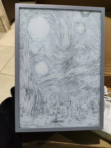 Day & Night Effect – Black-and-white artwork by day, transforms into a glowing masterpiece at night.